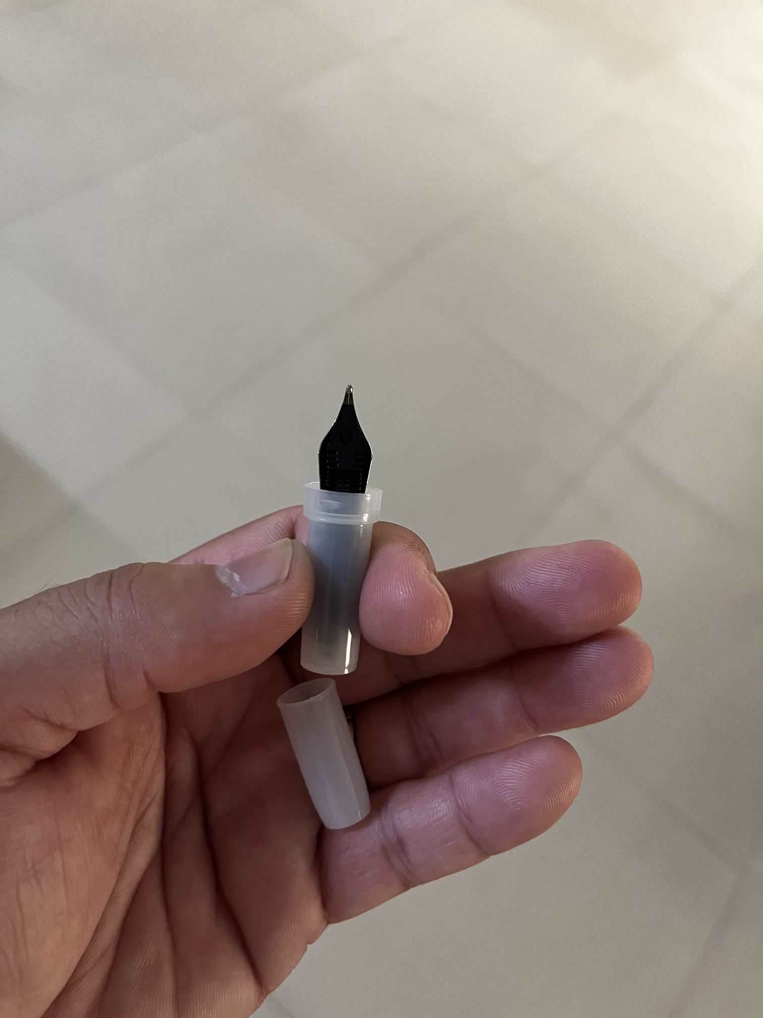 Mine is a JoWo-compatible nib unit with an ebonite feed. But you can get one in Bock or Kanwrite-compatibility, as well. All the same options in plastic feed, as well. And since they are in Stainless Steel, they are relatively cheaper to manufacture. Here is the page that I used to place the order for my custom specialty nib. I’d suggest you get a couple of custom specialty nib units and then keep swapping those in and out as needed.